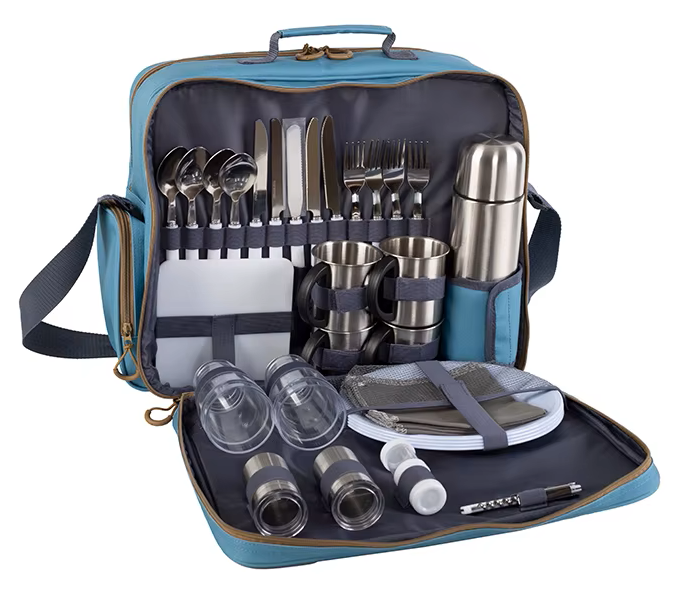 hochwertige Picknick-Kühltasche - bestens ausgestattet mit vielen Accessoires für 4 Personen