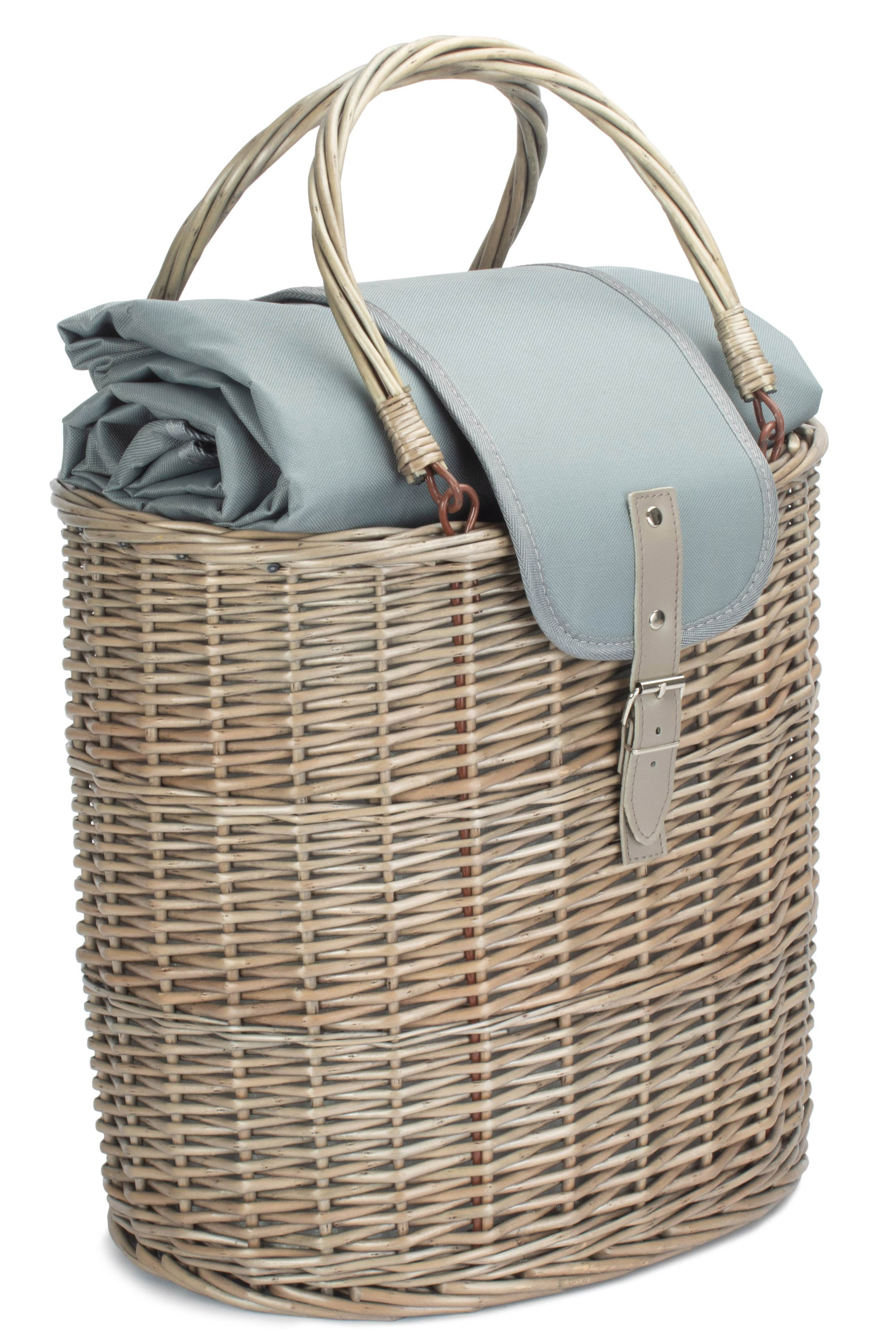 praktischer Weidenkorb - antik gewaschen - Verschlüsse graues Kunstleder