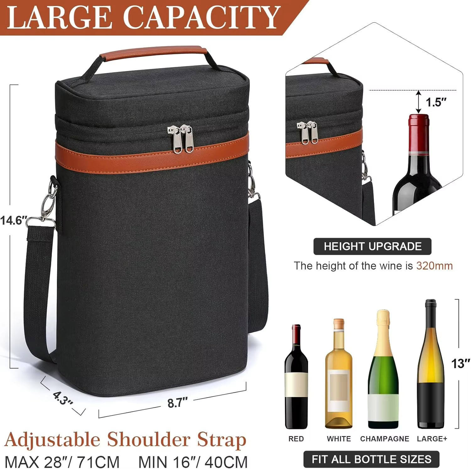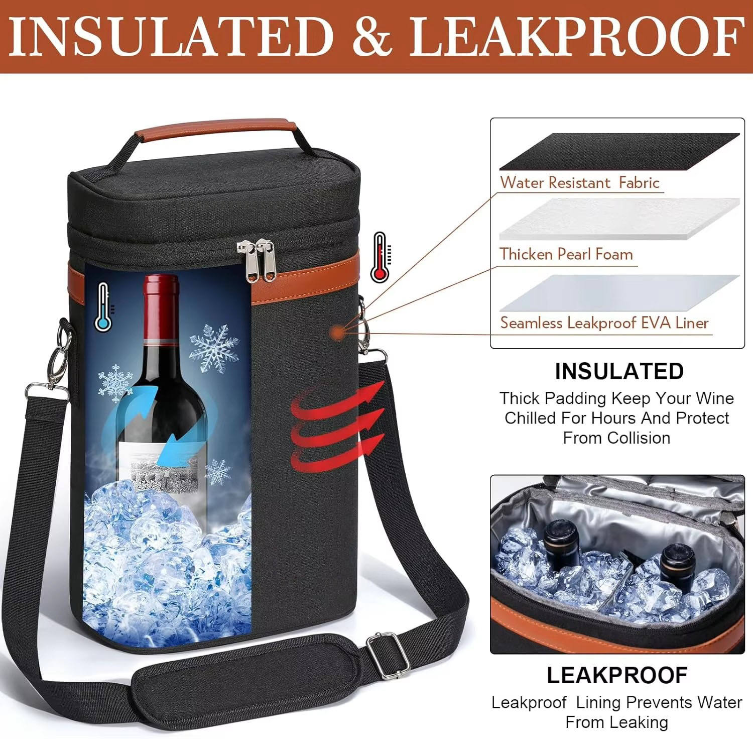 moderner, isolierter Wine-Cooler - für 2 Flaschen - geschlossen mit Zipper