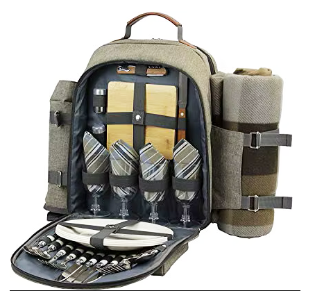 perfekter Picknick-Rucksack - voll ausgestattet mit Picknick-Accessoires für 4 Personen